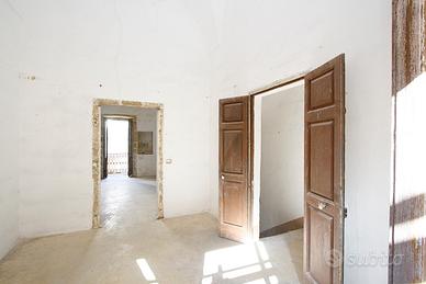 Al piano terra si trovano due ampi vani voltati, una cucina e un bagno, ambienti luminosi e ben distribuiti che conservano il sapore delle antiche dimore salentine. Il primo piano ricalca la stessa disposizione, con due ulteriori vani voltati, cucina e bagno, offrendo la possibilità di realizzare due unità abitative indipendenti o una spaziosa dimora su due livelli.