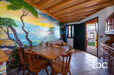 La proprietà offre una disposizione funzionale e accogliente. La veranda di accesso funge da ingresso, creando un ambiente ideale per cene all'aperto.