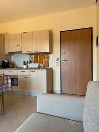 Vendesi appartamento al piano 2 in località Perronello in Castellaneta Marina. Situato all'interno di un villaggio vacanze, dotato di ampi spazi esterni e di piscina con accesso ai villeggianti. L'appartamento risulta essere in ottimo stato conservativo, si compone di soggiorno-pranzo, piccolo disimpegno, bagno con doccia e camera matrimoniale. Completa il tutto un ampio balcone che si affaccia sulla bellissima pineta Regina, il tutto come da planimetria allegata. Posto auto (non assegnato) interno alla struttura. Per raggiungere l'appartamento, lo stabile è dotato di ascensore. Sono stati montati due climatizzatori inverter (caldo-freddo) un anno fa. Viene venduta con mobilio all'interno. Prezzo trattabile.