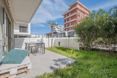 Accogliente appartamento bilocale inserito in raccolto contesto residenziale sito al piano terra e posto a soli 150 metri dalle spiagge . Con una superficie totale di oltre 50 mq, l'immobile è composto da un luminoso soggiorno con angolo cottura perfettamente attrezzato, ideale per preparare deliziosi pasti dopo una giornata trascorsa al mare. La spaziosa camera matrimoniale dispone anche di un letto a castello aggiunto, rendendo questo spazio adatto sia per coppie che per famiglie. Il bagno finestrato offre luce naturale e comodità. Ma non è tutto: potrai godere delle tue cene estive sul patio privato affacciato su un giardino curato, dove rilassarti all'aria aperta sarà un vero piacere. Incluso nel prezzo troviamo anche il posto auto coperto ed arredamento già presente nell'appartamento; inoltre la proprietà ha subito parziali lavori di restauro che ne hanno valorizzato ulteriormente gli spazi interni ed esterni. La posizione strategica dell'immobile ti permette di raggiungere facilmente ristoranti tipici, negozi e attrazioni locali che caratterizzano la vivace vita notturna jesolana. Non perdere l'occasione di vivere in uno dei luoghi più ambiti della costa veneta! MINIMI COSTI DI GESTIONE Riferimento: M 355 C.E.: F