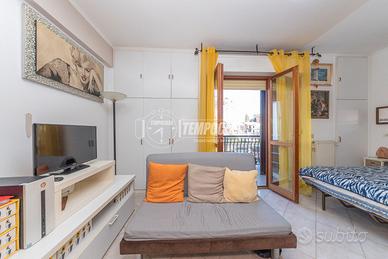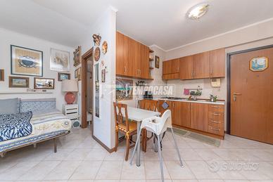 L'ingresso conduce a un'unica e accogliente zona giorno, dove troviamo una cucina a vista con tavolino, una zona notte con letto matrimoniale e uno spazio living ben organizzato con un piccolo divanetto. Il bagno è completo e funzionale. Una porta finestra permette l'accesso a un comodo balconcino con vista aperta, perfetto per godere di luce naturale e aria aperta.
