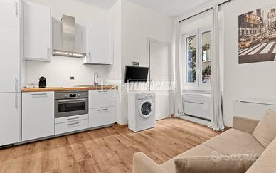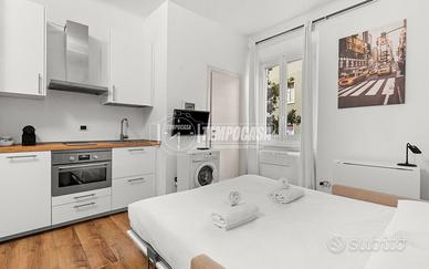 Se sei alla ricerca di un investimento sicuro e ad alta redditività, oppure desideri un rifugio moderno, funzionale e riservato nel cuore di Milano, questa soluzione rappresenta un'opportunità davvero interessante! In Via Bezzecca 10, a pochi passi da Corso XXII Marzo e da Piazza V Giornate, in una delle zone più richieste e strategiche della città, proponiamo in vendita un elegante monolocale di 30mq completamente ristrutturato, situato al secondo piano con ascensore all'interno di uno stabile signorile ben mantenuto. L'immobile si distingue per una distribuzione degli spazi estremamente razionale, come evidenziato dalla planimetria, che consente di sfruttare ogni metro in modo intelligente e armonioso. L'ingresso conduce in un ambiente unico ben organizzato in cui la zona giorno e la zona notte convivono con grande equilibrio: il mobilio su misura con letto a scomparsa permette di trasformare facilmente lo spazio in un accogliente living, mentre la cucina a vista, nuova e perfettamente integrata, si completa con un pratico tavolo da pranzo richiudibile che diventa elemento d'arredo. Il bagno, posizionato in modo funzionale e separato, è dotato di sistema di aerazione, sanitari e box doccia. La recente ristrutturazione ha valorizzato ogni dettaglio, con finiture contemporanee come il pavimento in grès effetto parquet, che dona calore all'ambiente mantenendo praticità e resistenza. Gli infissi in doppio vetro garantiscono isolamento termico e acustico, mentre il comfort è assicurato dal riscaldamento autonomo e dall'aria condizionata con pompa di calore. A completare la dotazione tecnologica troviamo anche un moderno sistema di citofono gestibile a distanza, ideale per chi desidera praticità e controllo anche fuori casa. L'esposizione interna a SUD-EST sul cortile interno rappresenta uno dei punti di forza - Classe: G - IPE: 338.96 kWh/mq anno