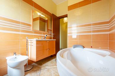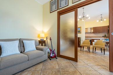 La superficie totale dell'appartamento è di 110 metri quadrati, perfettamente suddivisi in 4 locali, tra cui soggiorno, cucina, studio, 2 camere da letto e 2 bagni.