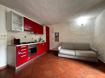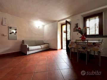 All'interno di un fabbricato rustico ristrutturato di sole tre unità, proponiamo in vendita, un bilocale con soggiorno e angolo cottura, camera matrimoniale con uscita sul retro dello stabile, bagno con doccia, una seconda stanza finestrata, accatastata come deposito, ma sfruttabile di fatto come studio o cameretta secondaria. Il giardino, che dà accesso all'appartamento, è il punto forte della proprietà, misura circa 30 mq ed è l'ideale per chi ha animali o semplicemente per gli amanti delle grigliate della domenica. Il riscaldamento è autonomo, un caminetto a pellet canalizzato (di recente realizzazione) è sufficiente per riscaldare bene tutti gli ambienti, è comunque presente un impianto a gas con caldaia autonoma che si occupa della produzione di acqua calda e cucina. Nessuna spesa comune con gli altri alloggi.