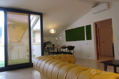 GREVE IN CHIANTI (Firenze). In una delle più belle zone del Chianti Classico, vicino alla Piazza centrale, e ben collegata alle principali località turistiche vendesi ampia, luminosa e caratteristica mansarda, finemente e recentemente ristrutturata (nel 2020). Secondo piano senza ascensore in piccola palazzina dei primi del '900. Situato In contesto residenziale tranquillo, l'appartamento è composto da una bella zona living, molto luminosa, con terrazza a tasca, cucinotto finestrato, camera matrimoniale con cabina armadio, bagno non finestrato con box doccia, seconda camera matrimoniale con cabina armadio e bagno finestrato "en suite" con vasca. Riscaldamento a pavimento e climatizzazione con pompa di calore. Pronto da abitare subito, ottimo anche come investimento per affitto turistico, già dotato di CIN e CIR. Si consegna completamente ARREDATO come appare nelle foto. Attualmente la casa è locata per affitti a breve termine, pertanto produce un buon reddito, ma è da considerarsi libera al rogito. Guarda altre offerte simili sul sito www. mediocasa. it