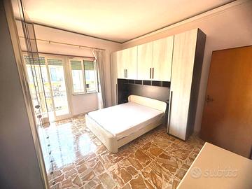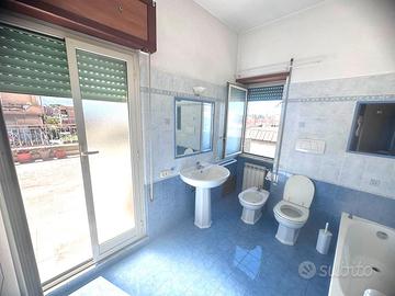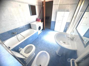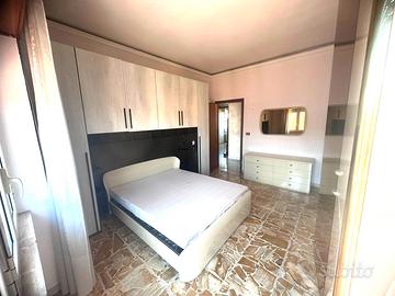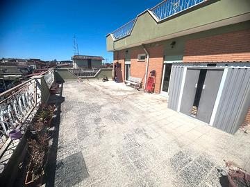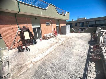 L'immobile è composto da un comodo ingresso/corridoio, un grande salone con camino (suddiviso in zona pranzo e zona living), una cucina abitabile separata, una camera matrimoniale con cabina armadio, una spaziosa cameretta, due bagni (uno con vasca ed uno con doccia), due grandi terrazzi di 55 mq (circa) ciascuno ed un balcone. Internamente l'immobile si trova in buone condizioni, necessita di interventi di miglioria ed ammodernamento degli impianti (elettrico, idraulico, termico-sanitario).