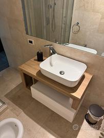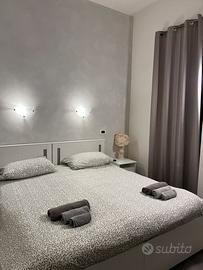 Salotto con divano letto matrimoniale e cucina, camera matrimoniale e 2 bagni.