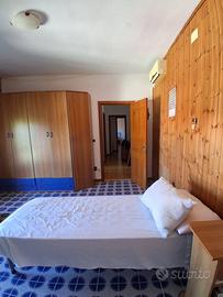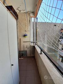 L'appartamento è composto da ingresso, ampio soggiorno con climatizzatore e due termosifoni a gasolio, da cui si accede ad una veranda chiusa, andito, cucina con balcone, disimpegno, una camera singola (con climatizzatore e termosifone) e due camere matrimoniali (di cui una con clima e termosifone e l'altra con clima), due bagni (di cui uno con vasca da bagno e termosifone, l'altro con box, ripostiglio.