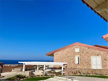 Zona giorno con grande apertura verso il mare e ampia veranda coperta