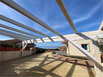 Zona giorno con grande apertura verso il mare e ampia veranda coperta