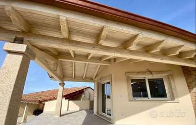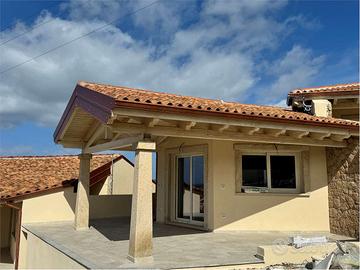 Le abitazioni vengono costruite ad alta efficienza energetica, in classe A, ove lisolamento termico è garantito da pareti di NORMABLOK a taglio termico, da tetti isolati realizzati con travi di legno bianco spazzolato a vista e da infissi e serramenti in alluminio a taglio termico.