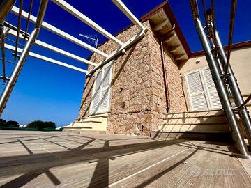 Zona giorno con grande apertura verso il mare e ampia veranda coperta
