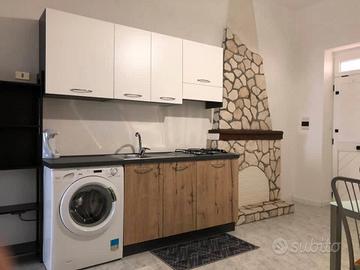 salone cucina abitabile (con camino), comoda camera matrimoniale (climatizzata), un bagno (avente vasca con seduta) e un piccolo ripostiglio.