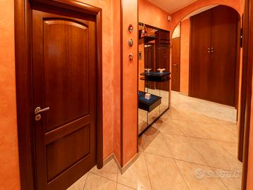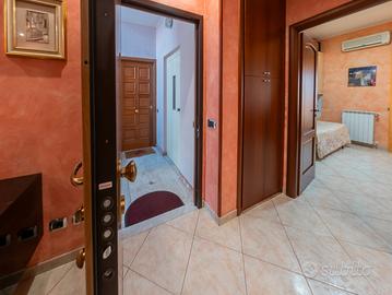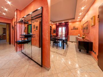 CODICE 6308 Belpasso (CT) a soli 250 metri dal centro e 50 metri dall'imbocco per la circonvallazione e precisamente in via Giulio Cesare civico 6 , luminoso e panoramico (vista Etna/mare) appartamento superficie catastale mq 150 vani 5 ,sito al 2° piano ASCENSORATO, più garage 35 mq pavimentato due posti auto, con annessa riserva idrica acqua, autoclave e un piccolo servizio costituito da lavandino e WC. TERMOAUTONOMO a metano con caldaia. Attualmente composto da: un salone, avente armadio a muro, corridoio, tre camere da letto di cui una matrimoniale con climatizzatore, altre due camere da letto, cucina-soggiorno grande vista Etna, con climatizzatore, bagno con (WC, bidet, doccia idromassaggio, lavandino) lungo balcone lato cucina una parte verandato, una parte aperto, mente il balcone lato nord è terrazzato, Nei balconi sono presenti due armadi a muro fuori e uno più piccolo. Due esposizioni. Infissi doppio vetro camera. Zanzariere ovunque. Parte della casa è rifinita con controsoffitto e annesse luci a faretti. Ristrutturata nel 2007. Porta blindata. Tende da sole. Impianti idrici ed elettrici a norma. Spese condominiali mensili euro 40