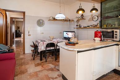 Pavimento in tutto l'immobile in marmo rosso escluso nei bagni.
