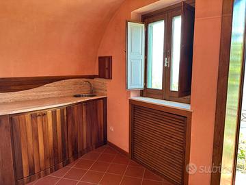 Gli ambienti interni comprendono un ampio soggiorno, cucina, due bagni e una suggestiva grotta adibita a cantinola, ben rifinita, perfetta come cantina vini, dispensa o angolo relax.