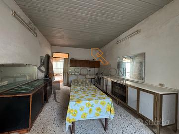 L'unità immobiliare ad una elevazione fuori terra è composta da ingresso su ampio soggiorno, disimpegno, comodo bagno con doccia e finestra, ampia cucina, ripostiglio, tre camere da letto, terrazza calpestabile accessibile da una scala esterna in muratura ed un magazzino con pertinente veranda coperta staccata dal corpo di fabbrica principale.