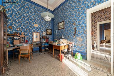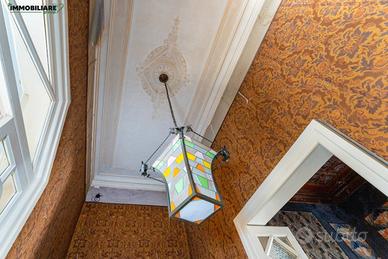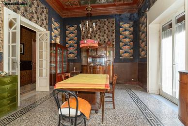 Gli ambienti caratterizzati dalla presenza di affreschi originali del 900', regalano un'atmosfera unica raccontando la storia di un'epoca elegante e raffinata, i pavimenti in ceramica decorata, in ottime condizioni, impreziosiscono ulteriormente gli spazi conferendo autenticità e carattere all'intera abitazione; inoltre la doppia esposizione rende gli ambienti particolarmente luminosi, valorizzando ogni dettaglio della casa.
