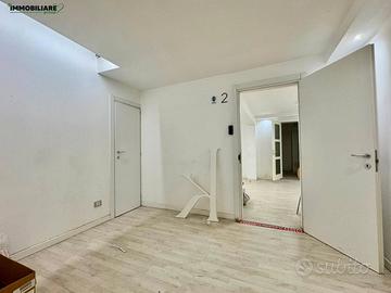 L'ingresso è su un ampio open space, seguito da un doppio vano facilmente divisibile completo di servizio in camera con box doccia.