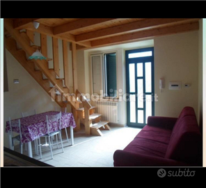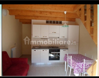 Affitto appartamento su due piani in residence . Soffitto con travi in legno , climatizzatore, cucina completa, 2 bagni con lavatrice e camera da letto matrimoniale.
