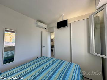 situato in un contesto condominiale ordinato a Lido degli Scacchi (FE). L'immobile si presenta in perfette condizioni e rappresenta una soluzione ideale sia come casa vacanze che come abitazione principale, grazie a una ristrutturazione recente e curata in ogni dettaglio. L'appartamento si compone di una luminosa zona giorno con accesso diretto al terrazzo, anch'esso completamente rifatto, dotato di nuovo massetto, impermeabilizzazione, ringhiera moderna e tende termiche che garantiscono comfort e privacy in ogni stagione. La cucina è moderna e attrezzata con elettrodomestici recenti: frigorifero, freezer, lavastoviglie e piano a induzione. La zona notte comprende una spaziosa camera matrimoniale e una seconda camera singola, ideali per famiglie o per ospitare amici e parenti. Il bagno è stato interamente rinnovato con materiali di qualità e design contemporaneo: arredamento completo, sanitari sospesi, ampia doccia in nicchia, termoarredo e lavatrice inclusa. È presente anche un pratico sgabuzzino interno, utile come ripostiglio o dispensa. Dal punto di vista tecnico e impiantistico, l'immobile è dotato di impianti nuovi e certificati, climatizzazione con doppio split a pompa di calore (uno dual, uno singolo), boiler con funzione ECO e predisposizione per boiler con pompa di calore. Gli infissi in PVC sono di nuova generazione, corredati da tapparelle motorizzate e zanzariere. L'ingresso è protetto da una porta blindata certificata, garanzia di sicurezza e isolamento termico-acustico. L'appartamento viene venduto completo di tutti gli arredi esistenti, sia fissi che mobili, inclusi quattro televisori. Sono esclusi solo gli oggetti personali, il materasso ortopedico, i quadri e i soprammobili decorativi. Completa la proprietà un comodo posto auto privato all'interno di un area recintato. Grazie alla sua posizione strategica, allo stato impeccabile e alla qualità delle finiture, questa soluzione rappresenta un'opportunità unica a Lido degli Scacchi. Classe e