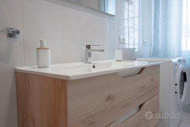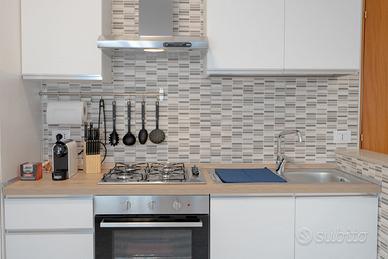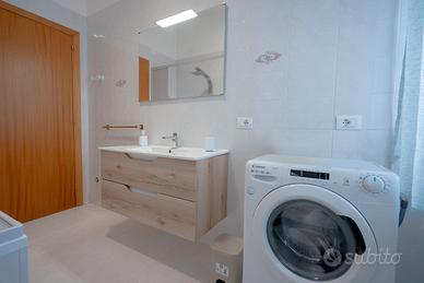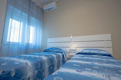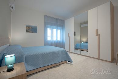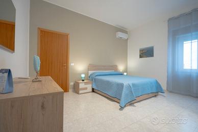 A Vasto città, a confine con il Centro storico, in posizione ben servita da ogni tipo di esercizio commerciale. E' un appartamento DI 70 mq, nuovo e molto accogliente, appena ristrutturato, con arredamento completamente nuovo, situato al piano rialzato di un villino bifamiliare. Posto auto libero in area condominiale. No animali da compagnia. Si compone di due stanze da letto, una con letto matrimoniale, l'altra con due letti singoli, componibili in matrimoniale. Ampia la zona giorno con un funzionale ripostiglio ed un ampio angolo cottura con piano fornelli, cappa aspira odori, frigorifero, forno, friggitrice ad aria, lavastoviglie, macchina elettrica del caffè e moka; tovagliato, pentolame, stoviglie, posate e suppellettili. L'appartamento è fornito di lavatrice, ferro ed asse da stiro, stendino; aspirapolvere, scope, scopettoni, secchi e bidoncini per la raccolta differenziata. Bagno con vasca, doccia, servizi ed asciugacapelli. Aria condizionata in tutti gli ambienti, autoclave, WiFi e TV a schermo piatto. Rilevatori fumo, rilevatore gas ed estintore. No animali domestici.