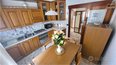 L'immobile ben diviso negli ambienti risulta così disposto: ingresso su disimpegno, ampio e luminoso soggiorno, sala da pranzo con cucina abitabile, due camere matrimoniali, bagno con doccia e comoda lavanderia.