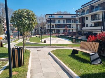 Avellino. In via A. De Gasperi, in zona residenziale e ben servita, poco distante dal centro città, proponiamo in vendita un appartamento in parco composto da nove fabbricati in fase di ultimazione. L' immobile di mq. 125 circa, oltre a balconi di mq. 40 circa, è ubicato al piano terra di un fabbricato dotato di ascensore, già ultimato, che presenta un' ottima esposizione e visibilità. L' appartamento si compone di ingresso, soggiorno cucina (unico ambiente), disimpegno, tre camere e 2 wc. Con l' utilizzo della domotica per la realizzazione del parco e quindi l' utilizzo di criteri di costruzione di ultima generazione, le rifiniture presentano materiali di qualità medio/alta ( fotovoltaico, pannelli solari, riscaldamento con impianto a pavimento con pompa di calore per riscaldamento e raffreddamento, impianto d' allarme, video citofono, tapparelle elettriche con alette regolabili, arredo bagni, predisposizione colonnina per ricarica batteria per auto elettriche nel vano garage. Completano la proprietà un giardino di mq. 140 circa attrezzato con impianto d' illuminazione e irrigazione ed un garage di mq. 25 circa al piano seminterrato del fabbricato raggiungibile con ascensore.