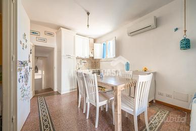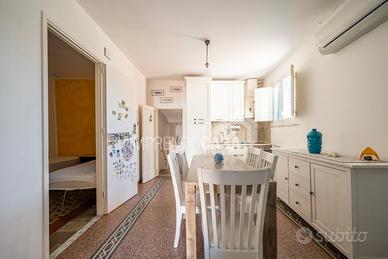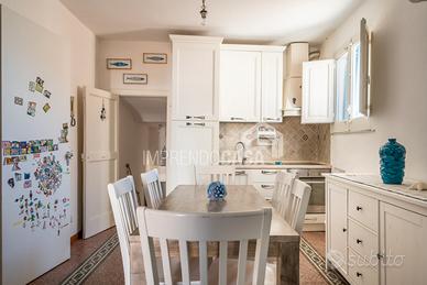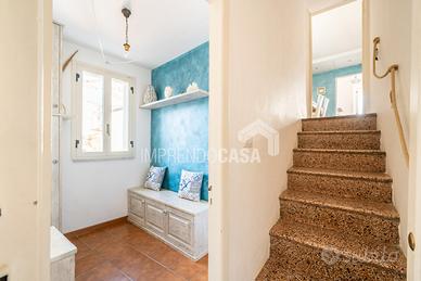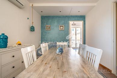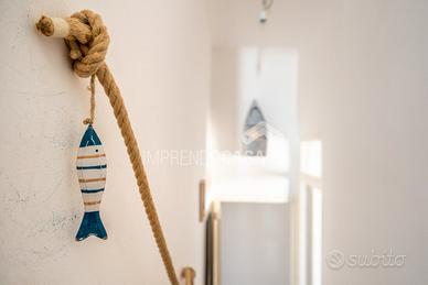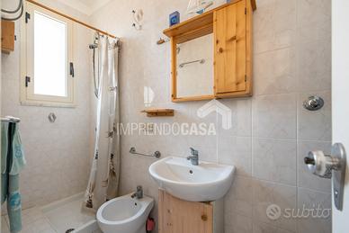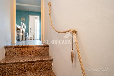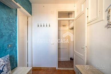 L'ingresso, al terzo piano, si apre su un vano luminoso con affaccio sul mare, corredato da ripostiglio/lavatoio e bagno finestrato con doccia, lavatrice e scaldabagno.