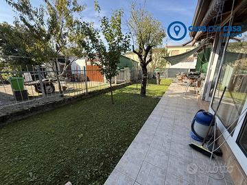 Esternamente troviamo il giardino piantumato completamente recintato ed esclusivo con due posti auto.