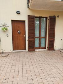 PRIMA COLLINA 3 LOCALI 90mq INDIPENDENTE + GIARDINO E GARAGE Prima collina pochissima distanza da Pesaro " Zona Babbucce". In fabbricato costruito nel 2007 con utenze autonome e senza spese condominiali ( circa 10 euro al mese). Appartamento al piano terra con ingresso ed utenze indipendenti. Ampio scoperto esclusivo pavimentato, comodo garage e possibilità di parcheggiare un auto proprio avanti casa. COMPOSIZIONE: scoperto esclusivo, ingresso, ampia zona soggiorno con cucina, antibagno e bagno, disimpegno per zona notte dovre troviamo due comode camere da letto, ripostiglio con area caldaia, bagno. Da ogni stanza si esce sullo scoperto esclusivo. RIFINITURE: ottime, ceramica zona giorno e parquet zona notte, aria condizionata, portone blindato, infissi in legno con doppio vetro termico etc.. Entrambi i bagni sona ampi così come le camere. ACCESSORI: comodo garage più possibilità di parcheggiare un auto avanti casa all'interno di area condominiale recintata. Contesto signorile tranquillo e riservato con vista nelle colline ma allo stesso tempo non lontano dal centro e mare di Pesaro o da Tavullia. Classe energetica D, 113kwh/mq/anno. Per informazioni o visite PESARO CASE, siamo a Pesaro in Via Vincenzo Rossi, 2 o Via Vincenzo Rossi, 5. Tel: Cell: Diego, Luca oppure Mauro