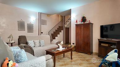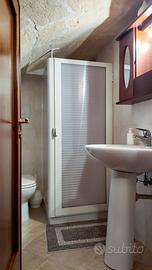 Galleria Immobiliare presenta fabbricato indipendente composto da cantina e piano terra da ristrutturare, piano primo abitabile fin da subito con terrazza di pertinenza. Al piano primo l'appartamento si compone di soggiorno, cucina e primo servizio, camera matrimoniale, cameretta e secondo servizio. L'intera zona notte è stata strutturata, sfruttando le altezze interne del fabbricato, su un piano di intermezzo soppalcato. Il piano primo vede la presenza anche della proprietà esclusiva della terrazza.