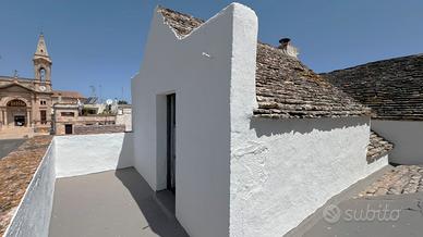 L'immobile presenta diversi tratti tipici dell'architettura pugliese, come le eleganti volte a vela e il pavimento in cementine d'epoca, che conferiscono autenticità e fascino agli ambienti. L'abitazione si apre su un accogliente soggiorno, collegato a una cucina con affaccio su un comodo balcone. La zona notte è composta da tre ampie camere matrimoniali, un bagno, un pratico ripostiglio e una lavanderia con accesso diretto a una prima terrazza a livello da cui, attraverso una scala esterna, si raggiunge una seconda ampia terrazza panoramica, perfetta per godere di momenti di relax all'aria aperta. Completa la proprietà un lastrico solare di esclusiva proprietà con vista mozzafiato sulla Chiesa dei Santi Medici e sui tetti a cono dei trulli, simboli del patrimonio UNESCO che rendono unica l'identità di Alberobello.