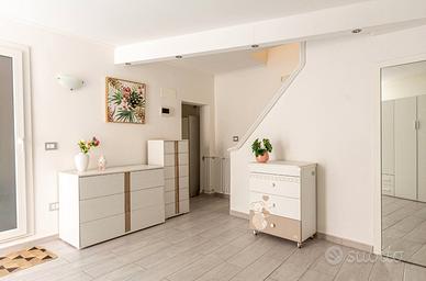 L' immobile, che si dispone su più livelli, vede la zona giorno posta al piano terra con ambiente living open space e primo servizio, zona notte al piano primo con spazio studio, vano lavanderia, secondo servizio, camera singola e camera matrimoniale soppalcata.