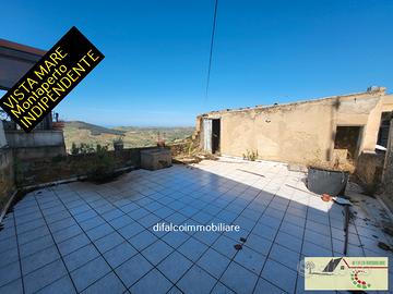 Montaperto, e con terrazza e vista mare. In parte da ristrutturare, ma in buono stato strutturale, con