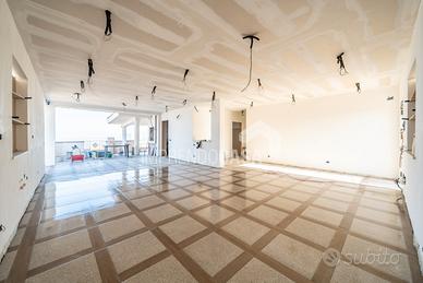 L'abitazione si presenta pari al nuovo, con elevate caratteristiche tecniche, funzionali e di comfort. Internamente è composta da ingresso su ampia area living con cucina, tre camere da letto, due servizi, due ripostigli, un Terrazzo di 65 mq e due balconi.