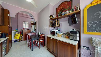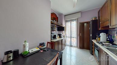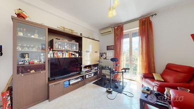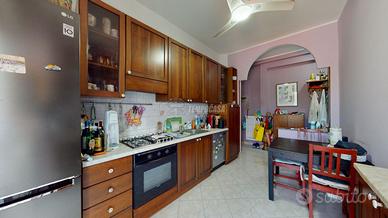 La soluzione è così composta: ingresso, cucina con balcone, disimpegno, soggiorno con secondo balcone, camera matrimoniale e camera singola.