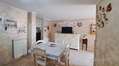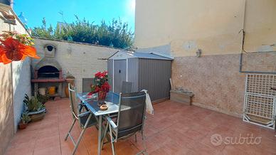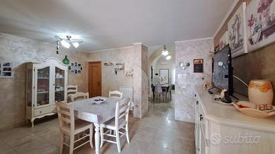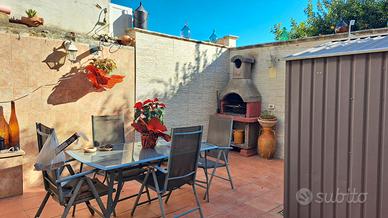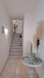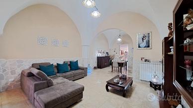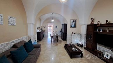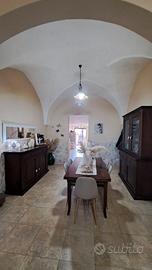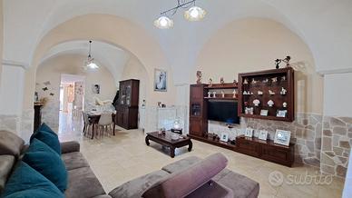 - piano rialzato composto da ingresso in salone con tipiche volte salentine, sala da pranzo, cucina abitabile e bagno con affaccio su utilissimo spazio esterno attrezzato ed ideale per pranzi e cene all'aperto;