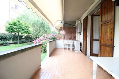 In contesto signorile composto da poche unità immobiliari proponiamo appartamento posto al piano terra con giardino esclusivo così composto: Ingresso in ampio e luminoso soggiorno, cucina separata, due terrazzi coperti, due bagni finestrati uno con vasca ed uno con doccia e due camere matrimoniali spaziose.