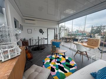 Italia Properties propone in vendita Elegante residenza panoramica in via Valassina 21 -- a soli 200 metri dalla metro Maciachini (linea gialla M3) Al terzo piano di una raffinata palazzina milanese, senza ascensore, proponiamo un appartamento unico nel suo genere: 118 mq complessivi, di cui 66 mq interni sapientemente distribuiti e una terrazza sovrastante di 52 mq collegata da una scala interna, che esaltano il piacere di abitare la città. Un'abitazione che parla di luce e libertà: entrando, l'area living con cucina a vista si apre su spazi ariosi e luminosi, ideali per momenti di convivialità e relax. La camera matrimoniale rappresenta un rifugio intimo, completata da una spaziosa cabina armadio che aggiunge ordine e praticità. Il bagno finestrato garantisce comfort e funzionalità nella vita quotidiana. La vera anima della casa è la spettacolare terrazza panoramica sulla skyline di Milano: 52 mq di panorami e atmosfere, accessibili direttamente tramite scala interna. Parte della terrazza è stata valorizzata con una moderna copertura bioclimatica, creando un'area living esterna con angolo cottura -- uno spazio versatile, perfetto per pranzi all'aperto, serate con amici o momenti di lavoro con vista sulla città. Uno spazio fruibile per gran parte dell'anno, che trasforma l'appartamento in una vera oasi privata nel cuore urbano. La posizione è strategica: a soli 200 metri dalla fermata Maciachini della linea gialla M3, che garantisce collegamenti rapidi con il centro città, oltre alla presenza di servizi, negozi e aree verdi nelle immediate vicinanze. Soluzione ideale per chi cerca la tranquillità di una zona residenziale senza rinunciare alla comodità urbana: perfetta come prima casa, elegante pied-à-terre o investimento dal forte appeal.