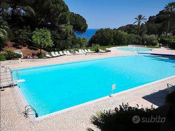 VENDO in splendida riserva naturale direttamente sul mare grazioso monolocale arredato, superficie 35 metri quadrati, indipendente con terrazza fronte mare e piccola cantina. Posto auto privato personale. Inserito in un prestigioso complesso riservato , con servizio di custode e portineria 24 ore al giorno , piscine d'acqua dolce e salata, area riservata ai bambini, ristorante a mare e a bordo piscina, beach volley , campi da tennis, minimarket interno. Scogliera a mare con piazzole attrezzate e spiaggia privata attrezzata . Ulteriori foto e planimetrie disponibili. La casa è disponibile anche per l'affitto estivo.
