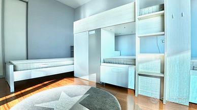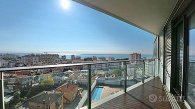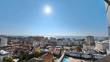 LIDO DI JESOLO - Piazza Mazzini Torre Aquileia Appartamento al piano 8° con esposizione sud composto come segue: Ingresso con portoncino blindato, luminoso soggiorno, angolo cottura, straordinaria terrazza con vista mare mozzafiato. Camera con letto matrimoniale, seconda camera con letto a castello e letto singolo (potenziale seconda camera matrimoniale) bagno in corian con sanitari, box doccia lavatrice, lavatrice, asciugatrice, comodo armadio dyson ecc. Riscaldamento a pavimento per una vivibilità di 365 giorni, aria condizionata già montata in pompa di calore (3 spilt) Pavimento in legno pregiato. Porte interne a tutta altezza. Serramenti in vetrocamera ad alto isolamento termico e sonoro. Garage interrato di proprietà. Appartamento completamente arredato. Il condominio dispone di piscina roof top. Classificazione energetica D 120,59 Acquisto da privato. Euro 479.000 Per qualsiasi informazione e per organizzare una visita anche senza impegno contattataci al numero Rif. H62-05C HOME - Agenzia Immobiliare Via Firenze, 8 Lido di Jesolo (VE)