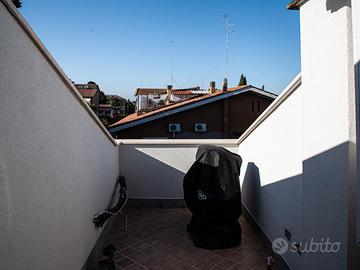 Dal soggiorno si accede al secondo terrazzo, ideale per momenti di relax all'aperto, con vista panoramica sulla zona circostante e perfetto per godere del clima romano.