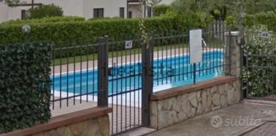 Bilocale al primo piano, da novembre a maggio, finemente arredato, per max 2 persone, no animali. Entrata indipendente in piccolo e tranquillo residence con piscina. Zona quieta e splendida vista lago da terrazza abitabile. Comodo al centro e a 300 mt dalla passeggiata sul lungolago verso Bardolino o verso centro Lazise. Garage privato collegato direttamente all'appartamento + posto auto esterno riservato - spese utenze escluse - no lavatrice - no tv
