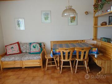 Due camere per totali 5 posti letto soggiorno con caminetto e cucinotto . Posto auto in garage condominiale . Il complesso condominiale è situato a 600 mt dalla pista delle Regine ed ha un giardino tutto intorno al fabbricato oltre a balcone d'ingresso..,