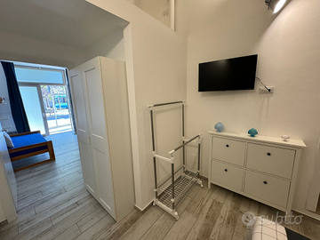 Bellissimo appartamento di nuova costruzione in AFFITTO a Lecce, in Viale Università. Si trova al piano terra, senza ascensore, ed è composto da un vano con letto matrimoniale, ampio vano con angolo cottura con cucina ad induzione e divano letto, bagno con doccia.