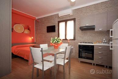 Ogni appartamento, da 2 a 4 persone, è costituito da un ambiente unico: zona notte con letto matrimoniale, grande armadio, TV HD, climatizzazione/riscaldamento; cucina con forno, frigo, freezer, microonde; zona giorno con elegante tavolo in vetro e sedie, divano letto matrimoniale di alta qualità; bagno con elegante doccia in vetro.