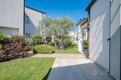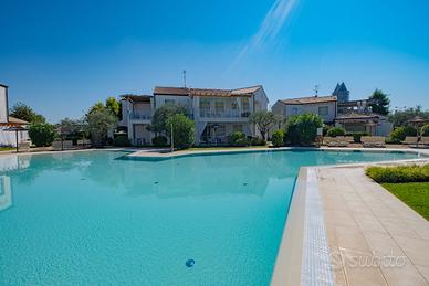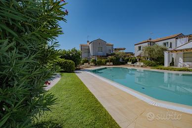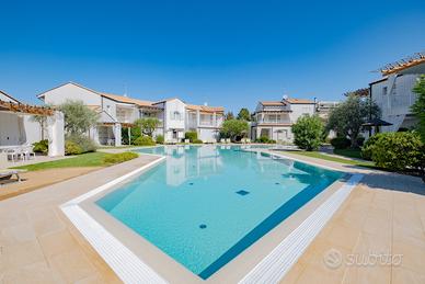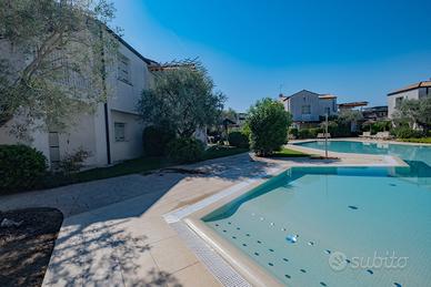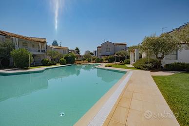 Esternamente è presente un'ampio patio con pompeiana invita ad assaporare pranzi e cene all'aperto in totale relax, tutto mentre si gode della splendida vista sulla piscina. Questa abitazione è venduta praticamente nuova, completa di arredamenti su misura eleganti e funzionali, impianto di condizionamento in pompa di calore per il massimo confort durante i mesi estivi, serramenti completi di zanzariere e pannelli fotovoltaici che contribuiscono alla sostenibilità energetica dell'immobile. Inoltre, dispone di un posto auto esclusivo.