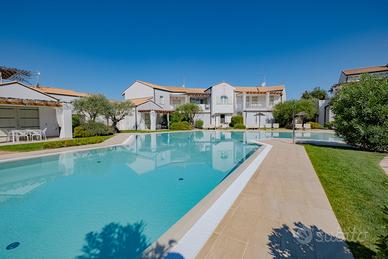 Il residence Les Maisons è rinomato per i suoi ampi spazi verdi curati nei minimi dettagli, oltre a vantare una piscina generosa provvista anche di idromassaggio. Non manca neppure l'accattivante area solarium realizzata con sabbia vera - perfetta per chi ama prendere il sole! Questa soluzione rappresenta non solo una residenza ideale ma anche un ottimo investimento immobiliare grazie all'elevata domanda nella zona turistica. Vendita soggetta ad imposta di registro.