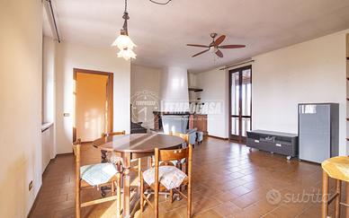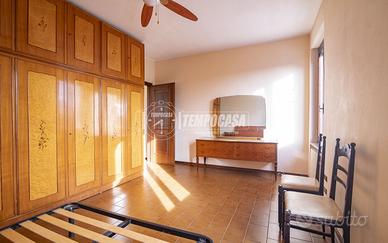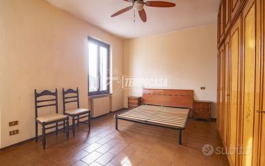 TRILOCALE CON GIARDINO, TERRAZZI, CANTINA E POSTO AUTO COPERTO DI 33MQ A Canonica d'Adda, completamente immersa nella campagna, in un'oasi di pace e tranquillità, proponiamo in vendita trilocale sito al primo nonchè ultimo piano di un grazioso e ben tenuto contesto di corte. L'appartamento è disposto tutto su un unico livello e gode di tripla esposizone (Est-Sud-Nord). L'immobile è composto da ingresso, soggiorno con camino, cucina a vista, corridoio, due camere da letto, disimpegno e bagno. La soluzione è completata da due terrazzi entrambi accessibili dalla zona giorno: il primo è un terrazzo verandato che affaccia sull'interno della corte, mentre il secondo, esposto a sud, affaccia sul verde circostante. Inoltre, l'appartamento è dotato di cantina e posto auto coperto di 33mq posti al piano terra oltre alla possibilità di parcheggiare nel cortile per i residenti. Infine, è presente un ampio giardino con vano ripostiglio di fronte all'appartamento, nonchè un ulteriore spazio esterno di proprietà, poco distante dal contesto, di circa 300mq. Internamente il trilocale è rifinito con pavimentazione in ceramica, infissi in legno doppio vetro e riscaldamento autonomo con caldaia sostituita nel 2015. Ideale per chi cerca una soluzione in contesto esclusivo, completamente immerso nella natura, dotata di diversi sfoghi esterni, cantina e posto auto. LIBERO SUBITO.SENZA SPESE!